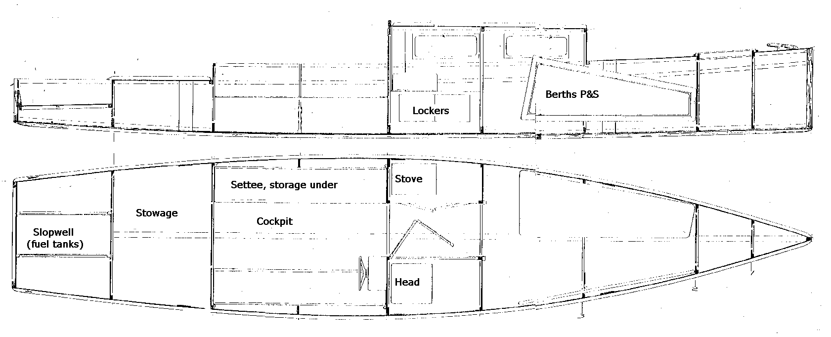 happen to be bulkheads, are internal. All longitudinal stringers such as chine logs and