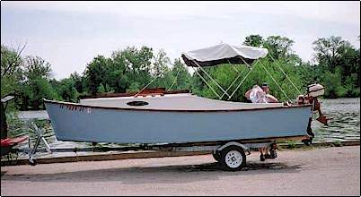 my then-current "fringe" boating activities, which centered on The Antique Outboard Motor Club (good group of guys; check-out their web sites. Previously I had belonged to the American Sternwheel Association, another good bunch with web sites.) Time to build a boat. In my internet travels I had stumbled across Jim Michalak's website and the series of newsletters concerning his AF4. This seemed to be the ideal boat for me; cheap and easy to build; capable of overnighting, and a good match for my all-time favorite outboard motor, the 1957 through 1974 OMC (Johnson/Evinrude) 18 hp.