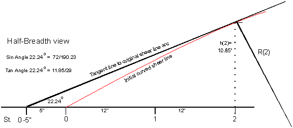 centerline is equal to the bevel angle of cross frame #2 (and #14),