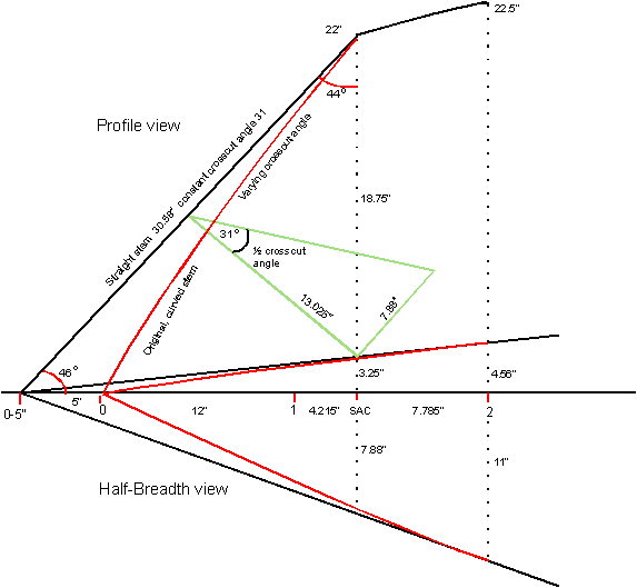 At the same time the rocker aft of Beam is increased by the same amount of 4.4”.