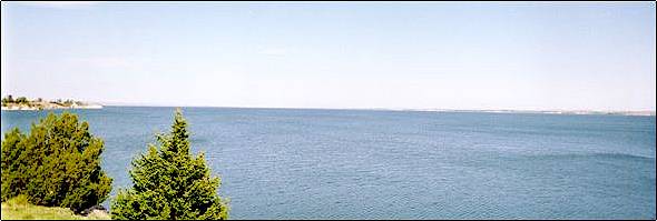 | Big Mac is a large man made lake created for irrigation and a cooling water supply for a large power plant about 30 miles down the North Platte river. It is a reasonably quiet lake considering the explosion of personal watercraft. (Someday the inventor of those things will have to answer a few questions from higher power and then we'll all know why something so obnoxious was created.) I digress, anyway the lake only has a couple small marinas and very few places to moor or dock so for the most part, it's peaceful. Except for areas close to boat ramps or the few campgrounds, you can cruise down the lake for hours without getting thrown about by powerboat wakes. |