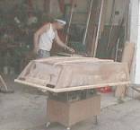 Alan and I both reviewed the drawings earlier that week so they were somewhat fresh in our minds. This was fortunate because neither of us had the foresight to bring the drawings with us that morning! We dragged out a long-neglected scrap sheet of luan ¼” plywood and laid it across a couple makeshift sawhorses. We followed a long tradition of ships' carpenters working with limited measurements and few tools to lay the lines for the dink (proof that good design plans are no substitute for proper layout).