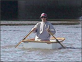 She handled remarkably well. The 5' oars propelled her better than expected. Extremely easy to maneuver. We found that she is not conducive to rowing in a forward facing position. Proper ballasting is key to the Twig's performance. A weight shift of only an inch makes a dramatic difference. Due to ballast concerns and low freeboard (not to mention cramped space) rowing with two people or large cargoes will be extremely difficult (we didn't try).