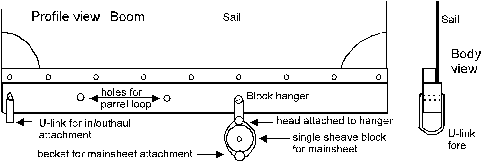 Make the halyard 20'. Drill a ⅝" hole in the mast thwart about 2"