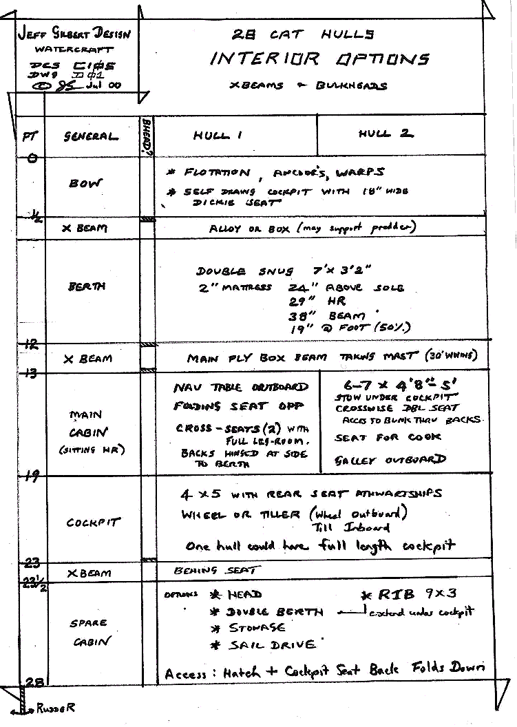 Note stern utility spaces -head, double berth, raft, anything bulky &