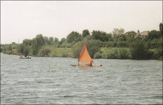 plastic tarpaulin sail copied from an Optimist rig. It goes pretty