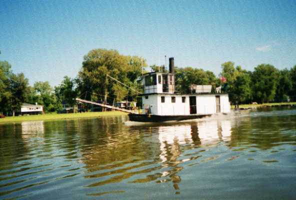 home-built 40 foot steel steamboat that has attended this particular outboard motor swap meet for the last four years or so