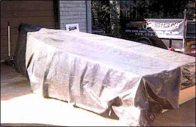 We've moved right along since this shot so the big finish is not too far away. I thought your readers might be interested in what we're doing in the boat painting department though. We own a sign business here in New England, and obviously exterior finishes play a big role in the appearance and durability of our products. My customers, for some unknown reason, expect that their signs although exposed to every typical New England weather condition should look new and last forever. And amazingly when finished properly, the signs almost do!