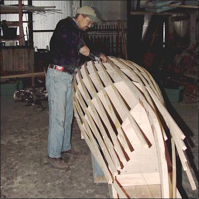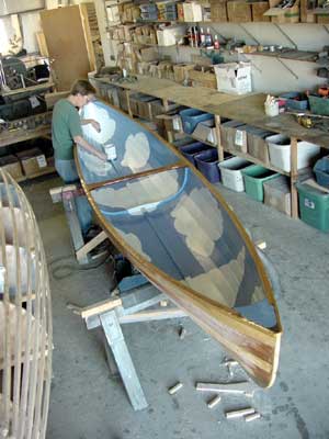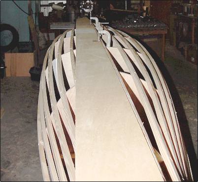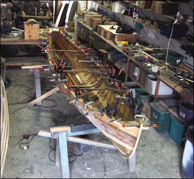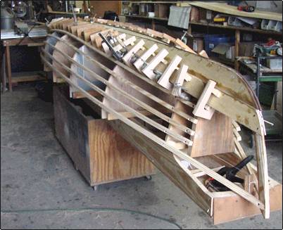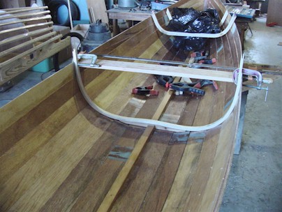 thwarts. They are laminated from a dozen thin strips of wood glued