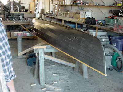 sticking to the epoxy. Once the glue on the garboard strake (the one next