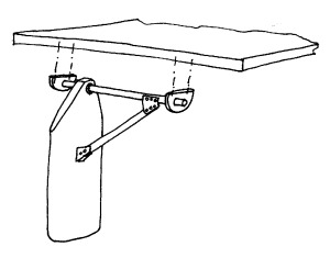 The leeboards are glassed on the outside so that they are very strong and very light - they must be held down in the water against their buoyancy by strong rubber bands pulling them forward and a rigid line running aft. The lines end has several knots and is led through a U-slot so that its length (and thus the position of the leeboard) can be easily adjusted.