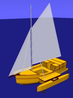 It was clear that only a multihull could provide the stabilty I wanted for a light-weight trailer boat. And I think I got infected by the multihull virus when I made experiments with my canoe converted into an outrigger boat before buying a "real" sailboat. A catamaran like Wharram's Tiki 21 seemed attractive, but would not offer the comfort I had in mind and wouldn't be a real trailer boat. As for trimarans... well there seems to be an unwritten law that trimarans are uncomfortable racing machines with extremely slim center hulls.