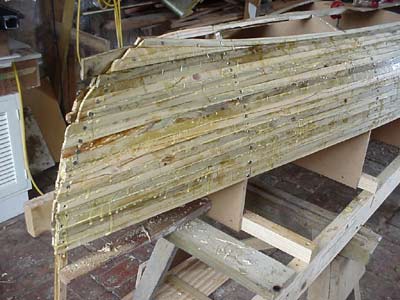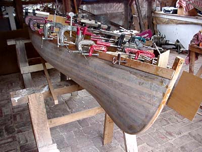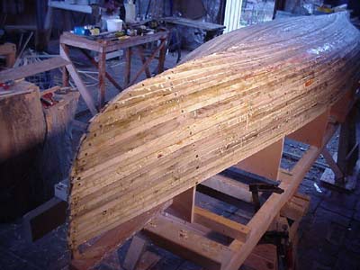 outside was glassed with 4oz. cloth. Although glassing the hull