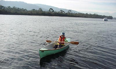 hours paddling confidently on the Huon River in the borrowed canoe.