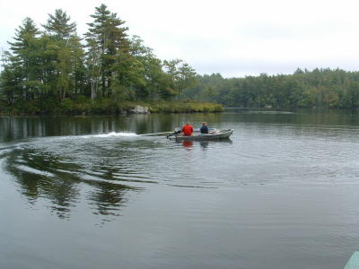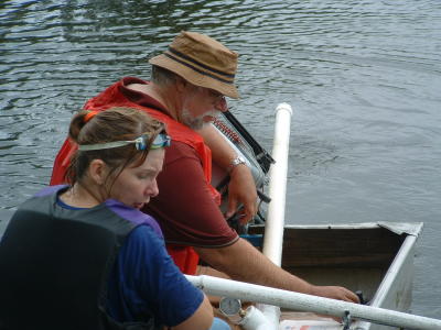 Under way again the suction tube was still making a lot of drag (it wasn't possible to row the boat much faster than 1.5 mph) but with the tube closer to the boat, directional control was much improved and we were actually able to go in straight lines and make predictable turns.