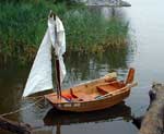 had a nicely done D4 Pram with a custom gaff sail rig. Unusually