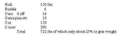 of the weight? For a 150 lb hull with two people rowing it and