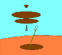 a wooden cabinet knob was attached with a screw eye. A bungee