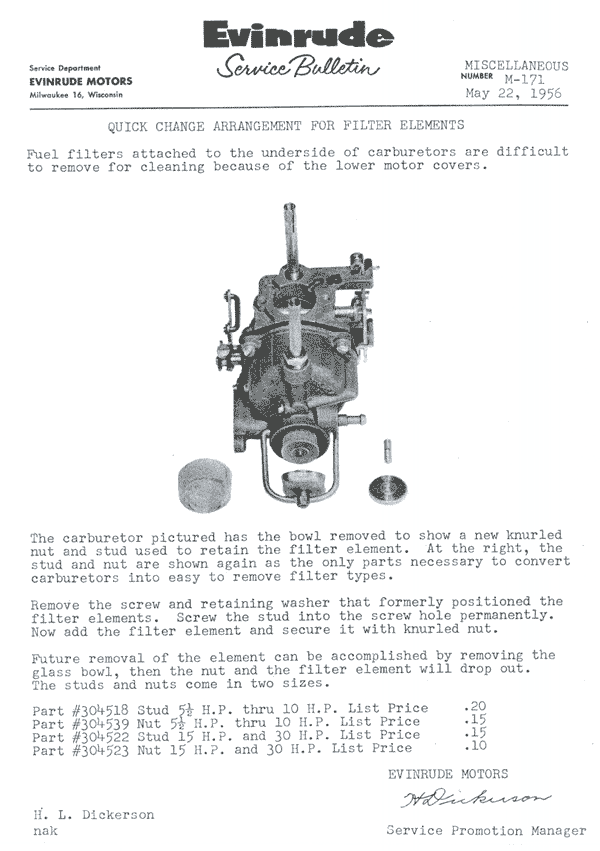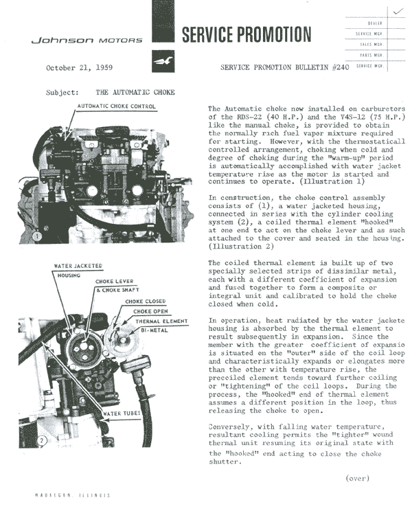 Most of the carburetors on OMC-built outboards of up to 40 hp,
