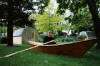 A couple years ago I bought several cans of automotive spray paint at a Big Lots closeout store because the colors appeared to be close to those of some old outboard motors, and anyway the paint was only 29 cents a can. I used some General Motors green paint, over zinc-chromate primer, to repaint the outboard from the bottom of it’s cowling down. Then I clamped the motor onto the auxiliary motor bracket on my AF4 in preparation for the upcoming Midwest Messabout, which would be the motor’s first test on a boat.