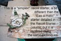 The starter rope was an old one; cotton fiber over a metal wire core, so I decided to replace the rope and also the recoil starter spring. Once removed, the old spring demonstrated it’s age by retaining a coiled shape, and the rope was replaced with ordinary nylon braided rope. This work was accomplished on a Saturday morning, less than one week after the Sunday degreasing of the motor.