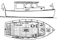 You can have a good cruiser on small inches. The chief thing I have learned in doing quite a number of tabloid shippies is to keep them weighty. Then they act more like boats. This is particularly true of the bulky kind of boat, which Mini Max unashamedly is. Weight takes a lot of the objectionable wallow out of the craft's sea behavior, something you cannot get with plywood. So she is beefy and will stay together. Her hull is of optimum deadrise, her topsides have a nice flowing batten, and she will build cheaply, cheaply, cheaply.