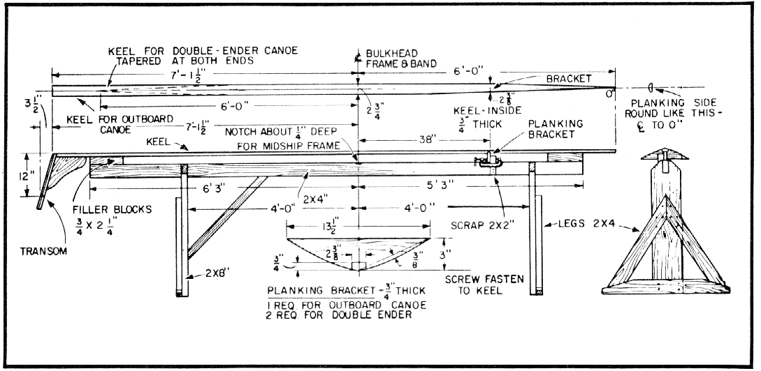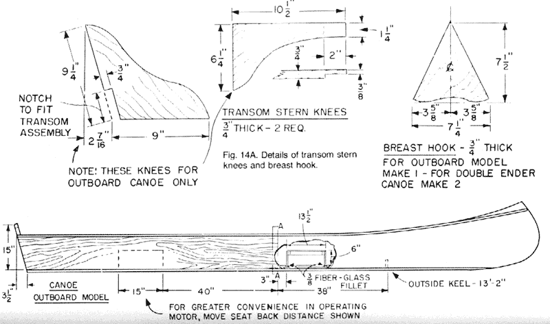 (braces) are used fora 15-foot canoe. These should be mortised