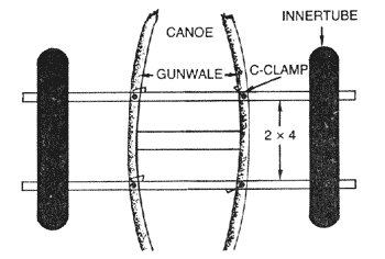 lengths; center them across the canoe and clamp to the gunwales.