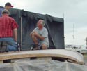 Drop trailer loaded with various Yakoos and skinboats. Here