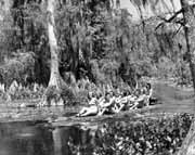 Wakulla Springs' visitors enjoying the ride down river aboard
