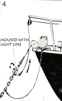 from the bow, or pulpit, and back to the helmsman, and cleated