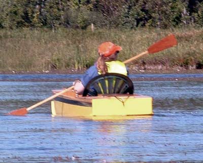 Rat that captured the hearts and minds of the men and women and children in my wife's extended family. Girls as young as 5 and as old as I won't say, and guys of large and larger sizes all found this little paddle boat to be an absolute delight. To get a turn in the Flats Rat you had to get in line. Seven of us tried it out and we had so much fun that we spent a second precious day of our week at Selkirk Shores State Park driving back up to the protected waters of Salmon River Reservoir, a half-hour inland from Lake Ontario, to enjoy the little boat some more.