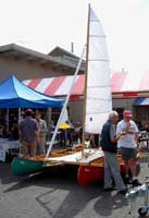 Multi-hulls don't seem to be very well represented at wooden boat shows in general, so this 'canoemaran' caught my eye. As with the building and repair display seen above, the 'canoemaran' appeared to be associated with a local small boat club.