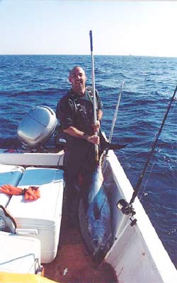 long and maybe 100 lbs. Gary had it up on a tuna hook and yelled