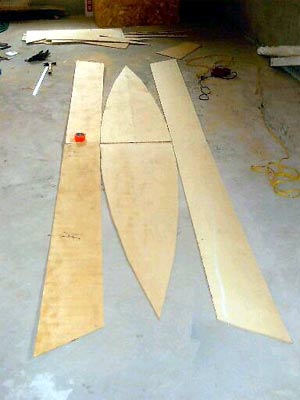 The plans call for the breasthooks to be made from plywood. I made them from some oak that I had lying around. The plans also called for a plywood seat in the middle, which I replaced with one thwart in the middle, my plan being to put seats fore and aft for paddling with my kids, while keeping our rear ends off the wet floor of the canoe.