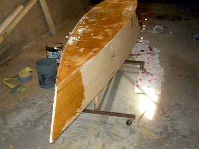 Also, the plans specifically say to avoid sheathing the canoe in fiberglass, since it is not worth the expense in a little canoe like this. Because I am planning to build a sailboat, I wanted to make my mistakes on the cheap canoe so that, when I made mistakes building the sailboat, I'd know how to fix them.