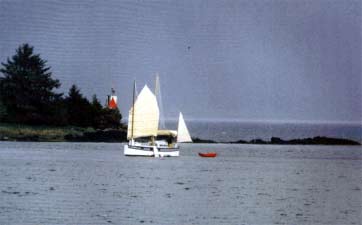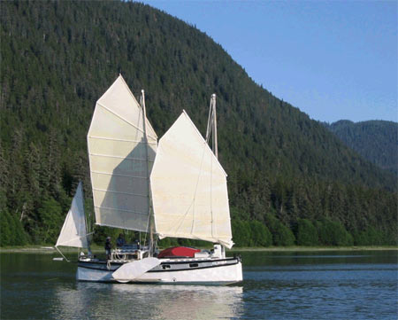 Ok... so I’m glossing over a few stories, some of which are the kind that give boat building a bad name (if you don’t have a developed sense of humor). We started 7 June and launched 29 November of ‘97. The interior was only roughed in, unpainted and without heat. Of course we moved aboard! Cash flow (the high viscosity variety) meant the bottom was copper-plated after launching (a tale unto itself). We were sewing the sails as Y2K arrived in the Kiribatis. Life intervened, Death intervened. The usual. Cat yawl in Spring of 2000, schooner by Autumn. Overall we figure that we’ve got just over a year of work and $12,500 in her ($4000 of that for 2000 lbs of copper plate, and about 20% is markup for building in rural Alaska).