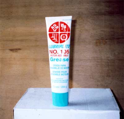 Lubriplate # 105 "white" grease. This grease is sold in (2) different tubes; one tube has drawings of engine parts on it (as above) and one tube has drawings of little outboard motors on it. It is the same grease in either tube; I called the manufacturer and asked.