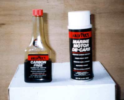 Other fluids I would suggest avoiding are automotive carb. cleaners which one mixes in with the gasoline. Most of these advertise that they remove "varnish." The cork carb. floats in most of the old OMC's are varnished cork. As with starting fluid, the cleaners can wash the oil from moving parts, reducing lubrication. If you suspect that your engine is running poorly (or not at all) because of a dirty carb., then remove the carb, take it apart, clean it, and install a rebuilt kit. However, if you are going to insist of mixing carb cleaner in with your gasoline, make sure it is a type specifically recommended for 2-cycle engines.