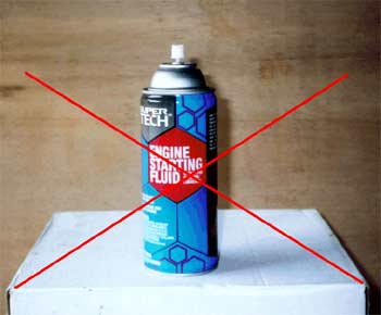 A big "No-No;" Engine starting fluid. This stuff can ruin an outboard motor quick. If your engine won't start without this stuff, something is wrong with the engine. Fix it.