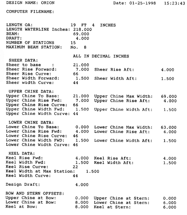 If you need further dimensions or details, just email me. I will leave you some license to make minor modifications of construction details that make sense to you and allow for easier building, but I want to keep the overall dimensions, shapes and concept as built. It sails fine as is and, at least to me, pleases the eye.