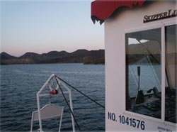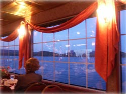 Such dreams often bring me to waters such as this lake. By happy chance that day, Miss Pat and I found ourselves surprised by joy. We had ventured upon a late afternoon dinner boat. We signed up for the sunset cruise, took our dreams with us, and smiled wistfully at one another and waved good-bye to shore and trouble.