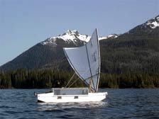 But then some genius came up with the idea of setting a yard between the limbs and centered atop a short mast. A universal joint at the masthead lets the sail roll over the centerline when tacking. It rolls over the yard to raise and recline the sail. It sheets around the mast as we’re used to. That’s three count ‘em three axises of control! What’s more, the rig is automatic in the Hassler sense (complete control via running control lines... you don’t have to ‘hand’ the sail). Such rigs beautifully extend Phil Bolger’s Birdwatcher concept (the basis for Trilobyte’s design).