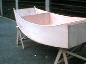 Construction is nail and glue. The boat is 7'6" at the waterline with a beam 0f 48 inches positioned at 60%