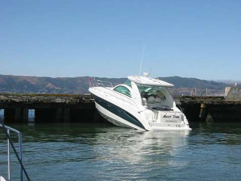 the boat is in an enclosed building in nelson's boatyard in alameda.