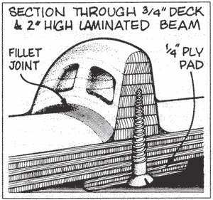boat using bolts through the deck or cabintop, you can use those same bolts for clamping pressure while laminating and