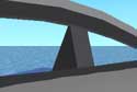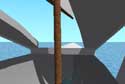 Extending the lexan sides out as a natural extension of the hull flare gives a space that’s natural to lean back and psychologically open. Sloping the cabin top down fore and aft limits accommodations to a solo adult (or adult and child) but minimizes air resistance and materials. I was concerned about visibility but the fairly coarse but geometrically accurate renderings (forward, side and stern) show visibility that is at least as good as most vehicles on the road. When conditions are right (no rain and gentle winds) standing is a great option if you remember to really duck when tacking.