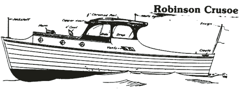 Robinson Crusoe will build for about $300 to $400 more than the cost of an outboard cruiser. She’ll give years of wonderful adventure!