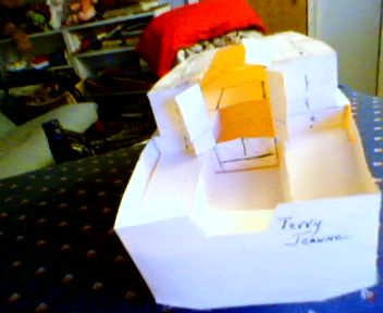 - the mast is moved back a foot and a one foot bow sprit enables me to get more sail power;
