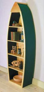 Now some might wonder if this craft is all that seaworthy. After all a lot of spray would kick up and it would be a fair weather table at best. I suppose one could tie some tarps between the legs to keep the spray out but it wo uld be simpler and probably cheaper just to nail some plywood to the legs. Trouble is when you go to the boat launch you would run into some ‘boaty’ type know it all who would likely point out to everybody that you were going to sea on a dining room table! So it might be best to disguise the table as a boat. How, you might ask, is this possible? I was at a loss myself but I accidentally came across plans for a ‘book case’ that will work well. I found the picture on the right at: www.how-to-plans.com which gave me an idea how to disguise the table as a boat!